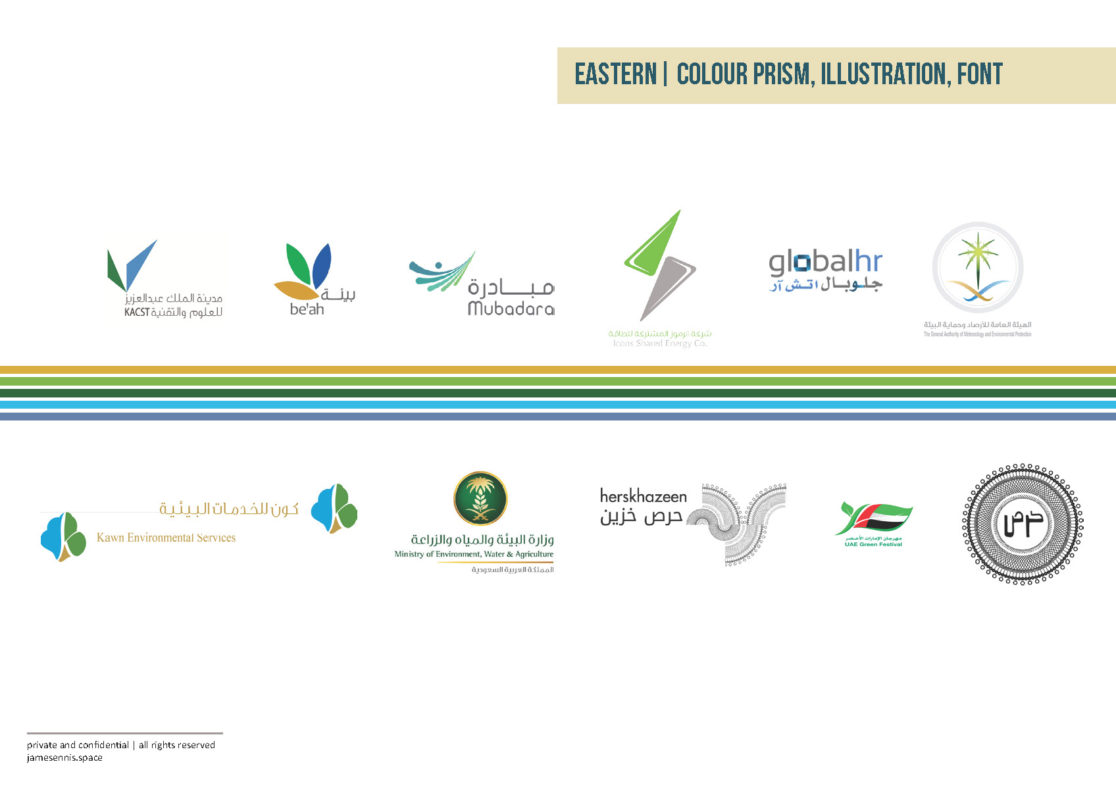 A very interesting project to be involved in, a brand targeting two cultures with different scripts. Arab script and the Roman alphabet. ‘A convergence of sustainable solutions for sustainable needs‘, providing Global clients in the sustainable sectors, Energy, water, waste, services in the Kingdom of Saudi Arabia.