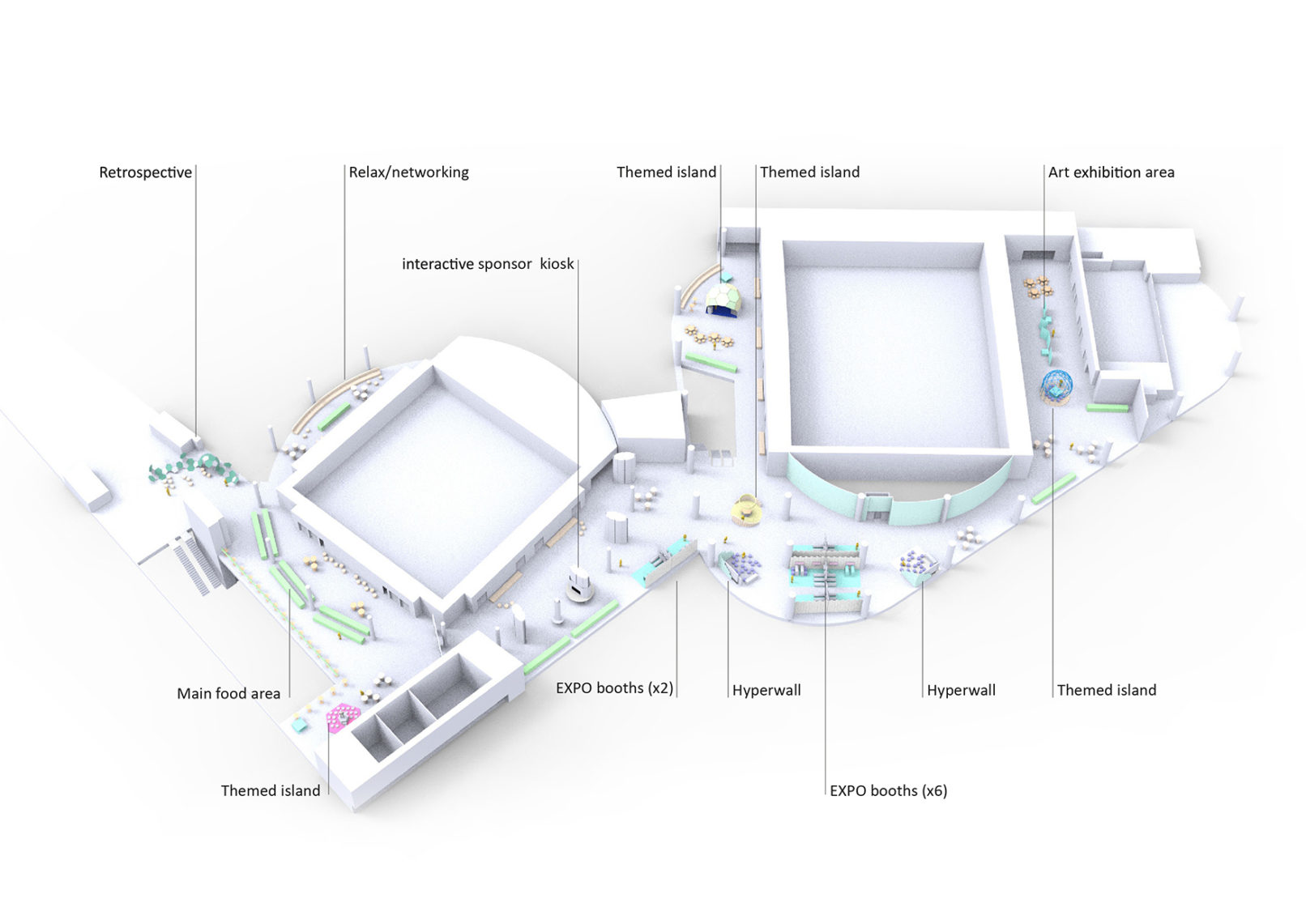 The initial project involved designing a conference for +/- delegates to be carried out over 5 days at the SingEx venue, Singapore. We were endeavoring to set out a new standard in creating a fully ZERO waste Conference. Working with local maker labs a modular concept was being developed using a full circle design process.