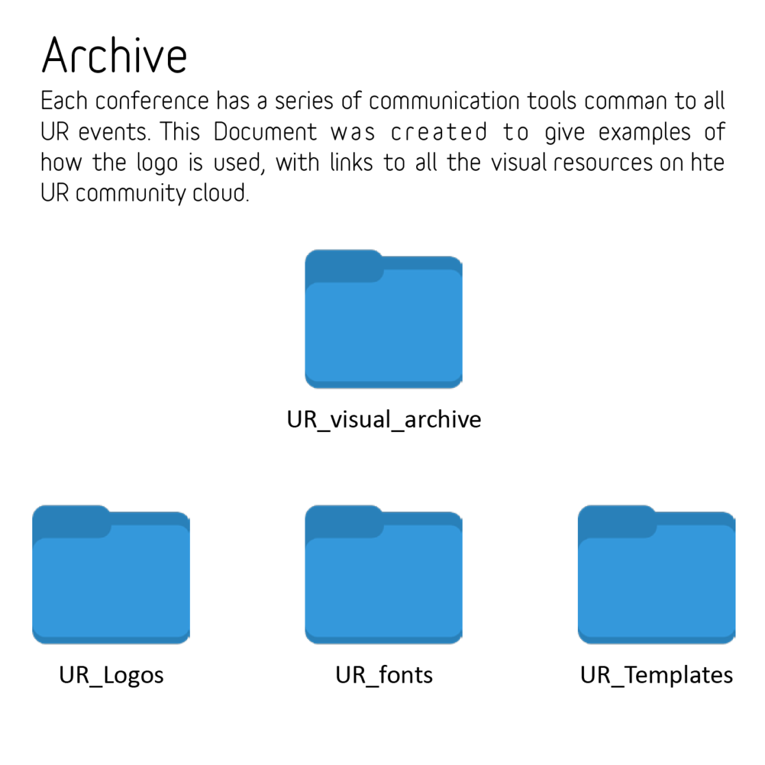 Starting out in 2019 with the Goal of UR2020 in our vision, regional, National and themed conferences were happening around the world. To help with these we set out a visual Guideline archive, giving access to all UR visual content, that gave clear instruction in how to use UR content, but still allowed them be creative.